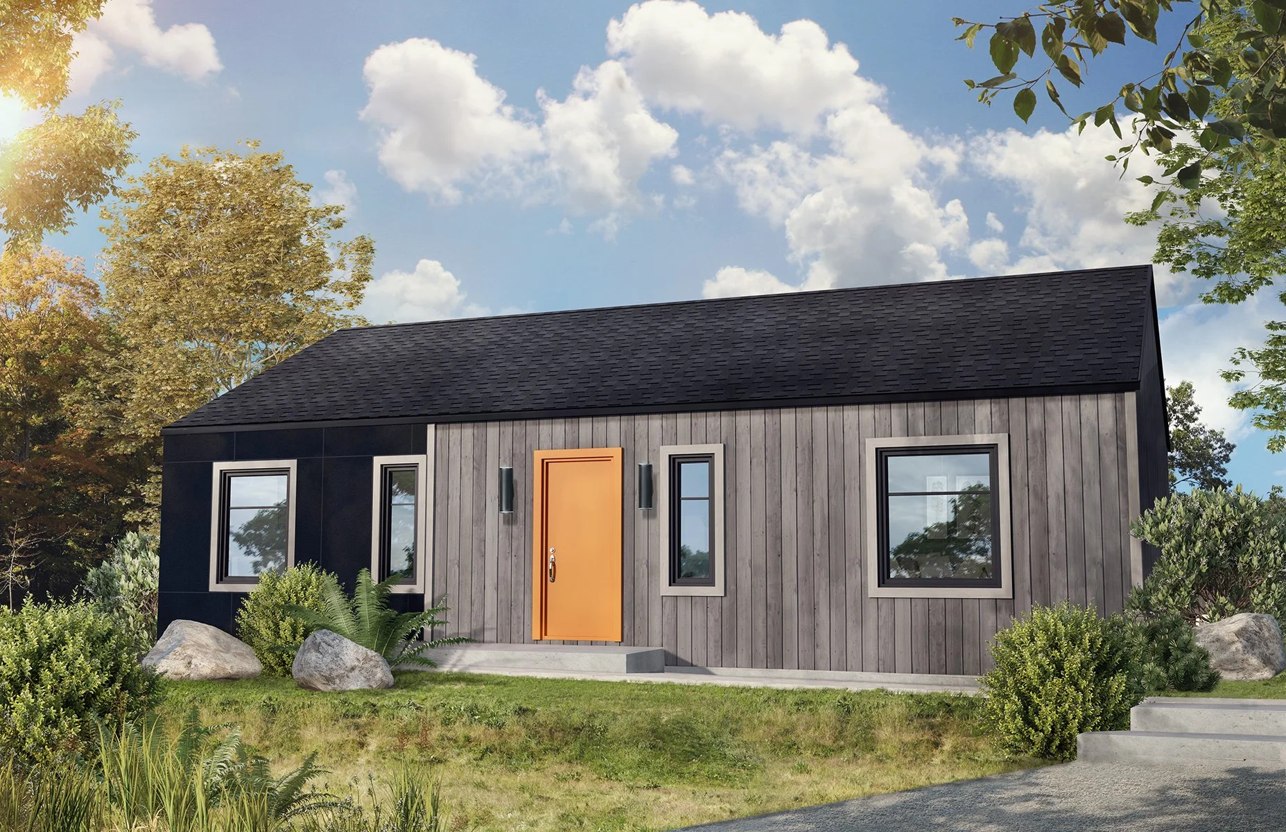 Superficie 1040 pi2 Dimension 40’ x 26’ Chambres 3 Salles de Bain 1 JulietteLa juliette met en valeur des matériaux naturels et bruts. bois clair, métal, verre. Un style à la fois contemporain et organique. DEMANDEZ UNE SOUMISSION Diapositive 1 Diapositive 1 (diapositive actuelle)